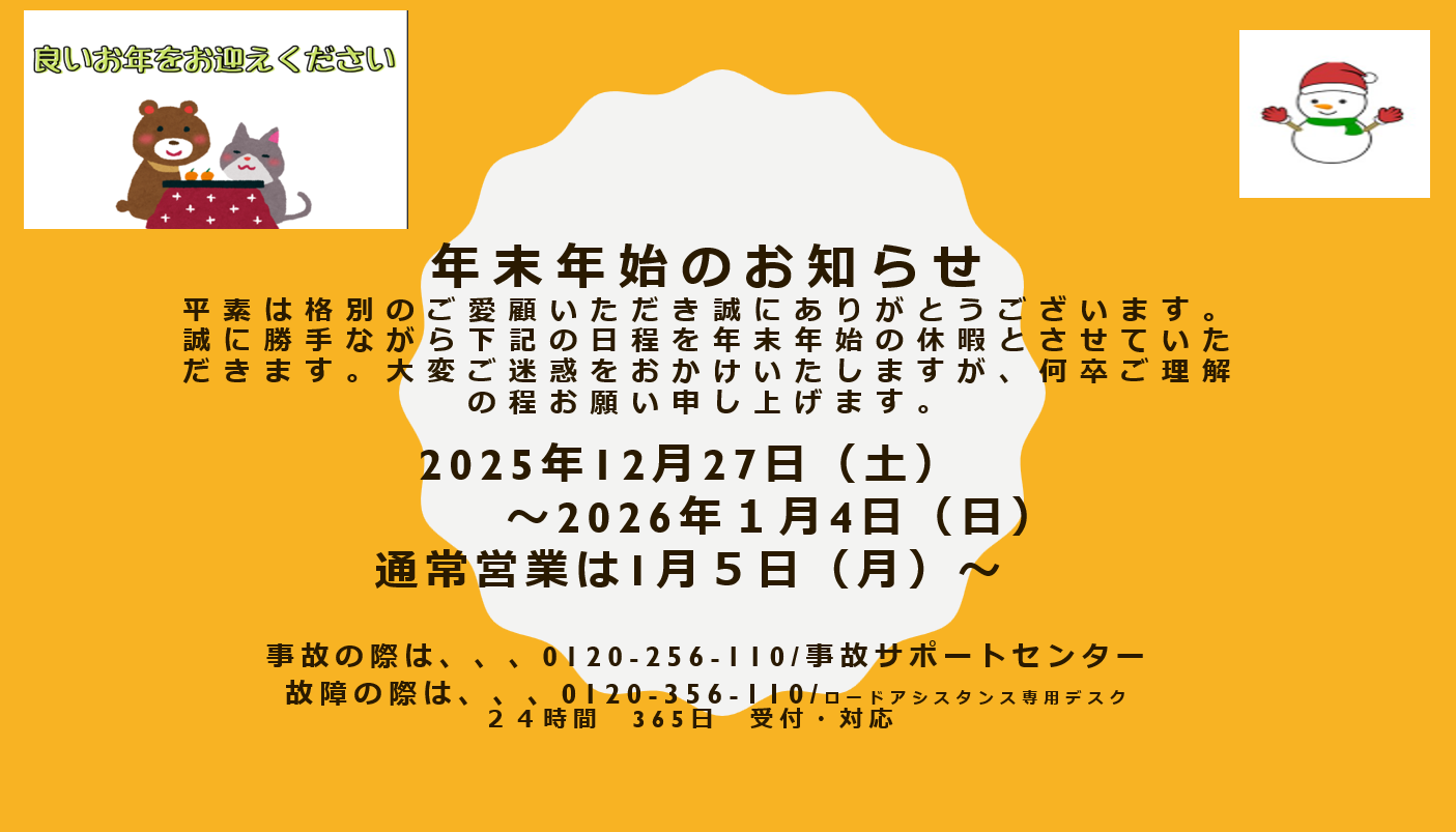 2025年 年末年始休業のお知らせ