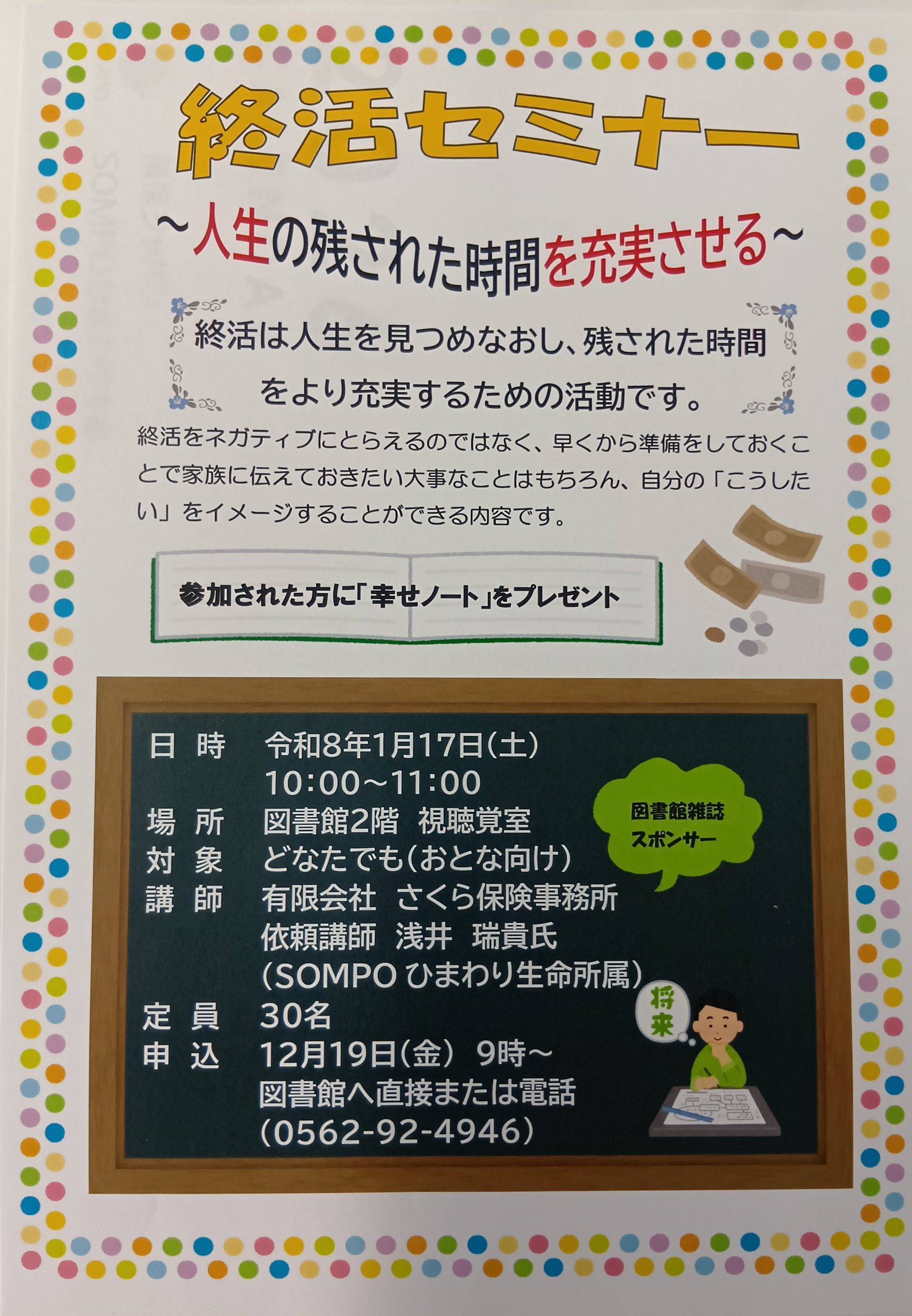 参考になる終活セミナーになりますように。皆様のご参加お待ちしております。